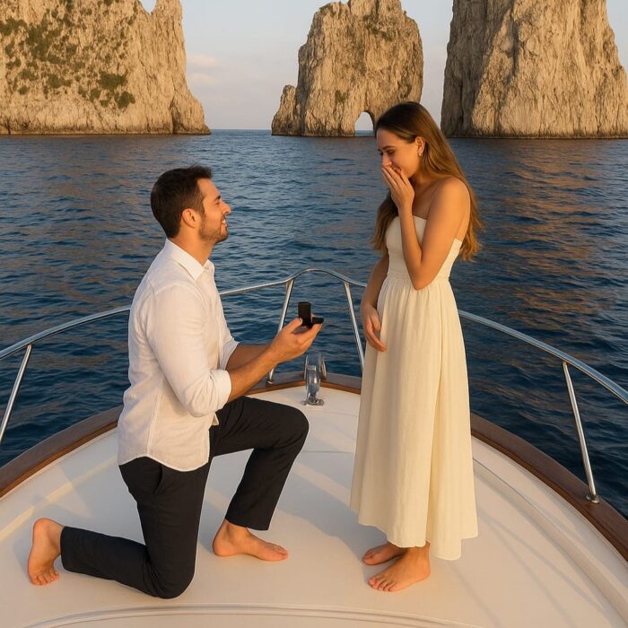 At sunset, the Naples coastline becomes the perfect stage for your proposal. Our team tailors every detail, from the private boat to the champagne toast, ensuring an intimate and unforgettable “Yes.”